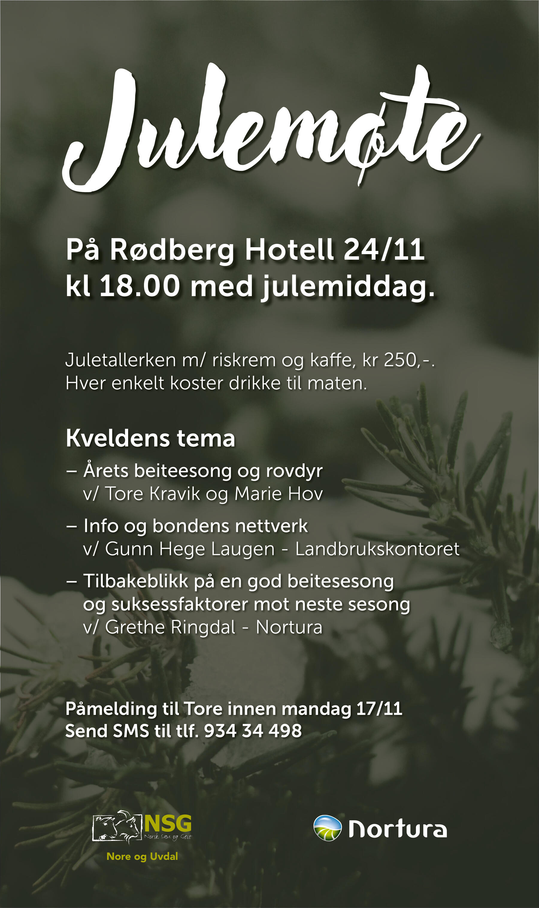 Julemøte i Rødberg, Numedal 24nov Rødberg hotell, Rødberg18:00 - 23:59 Påmelding til Tore innen mandag 17.11, SMS til nr. 93434498